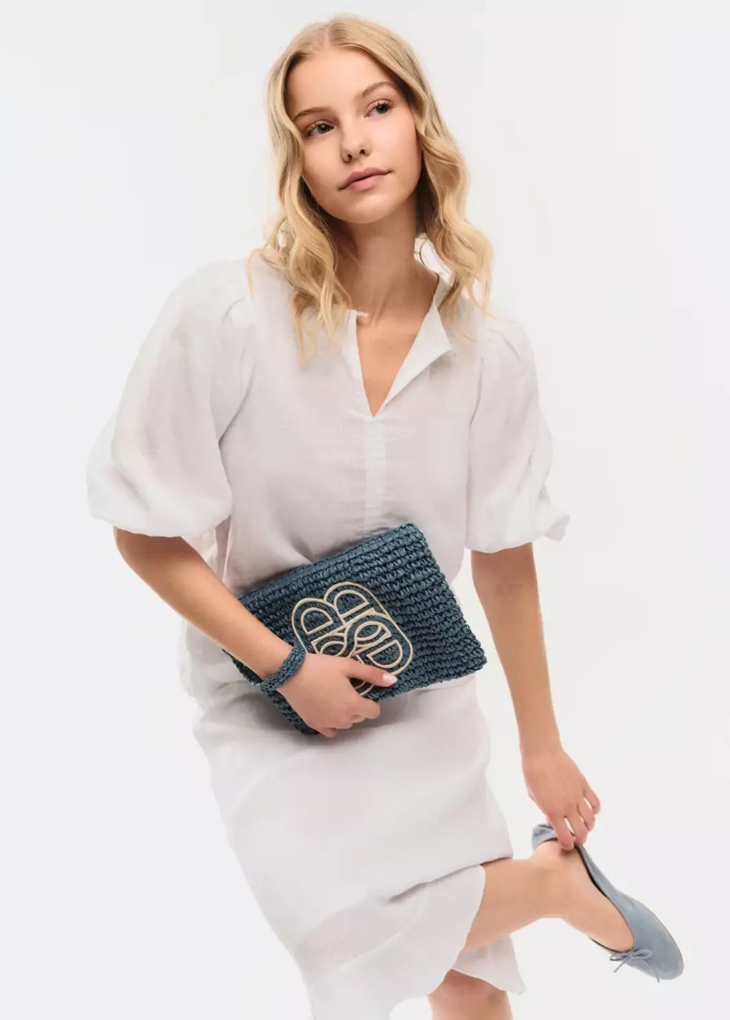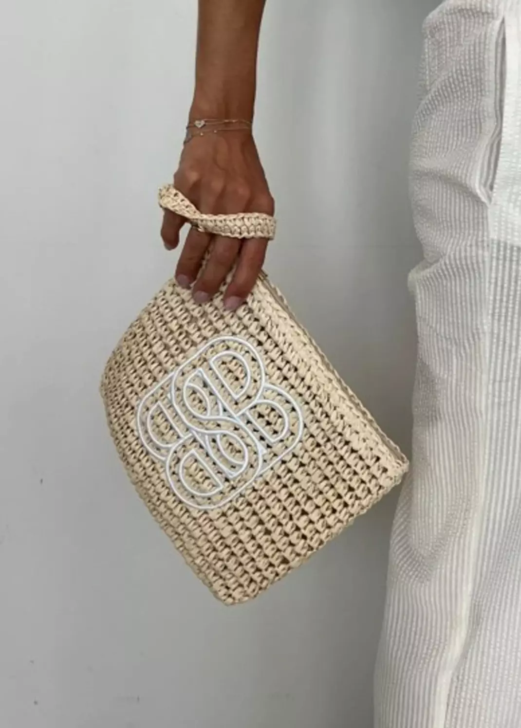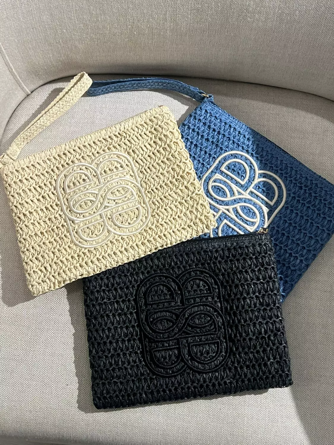 Ella & il Mim straw clutch sort,beige, blå