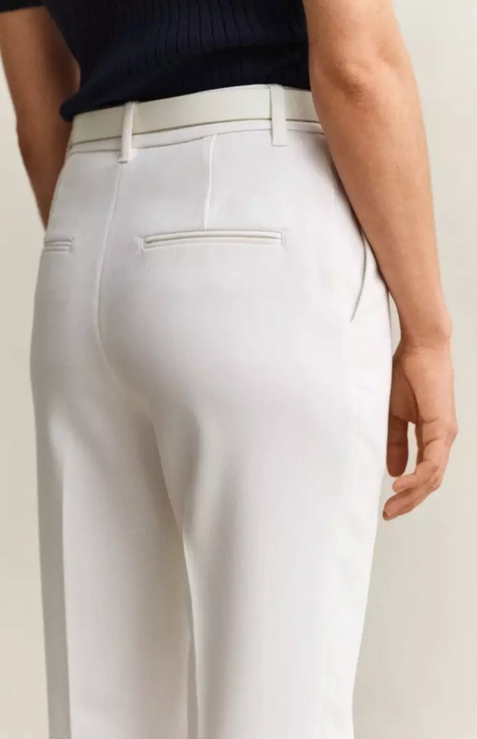 En super elegant bukse med smal passform. Den har middels høy midje og en super flatterende sleng. Skrålommer og pressefolder som gir et pent og tidløst uttrykk. Buksa er like fin på jobb og til hverdag, som til fest.