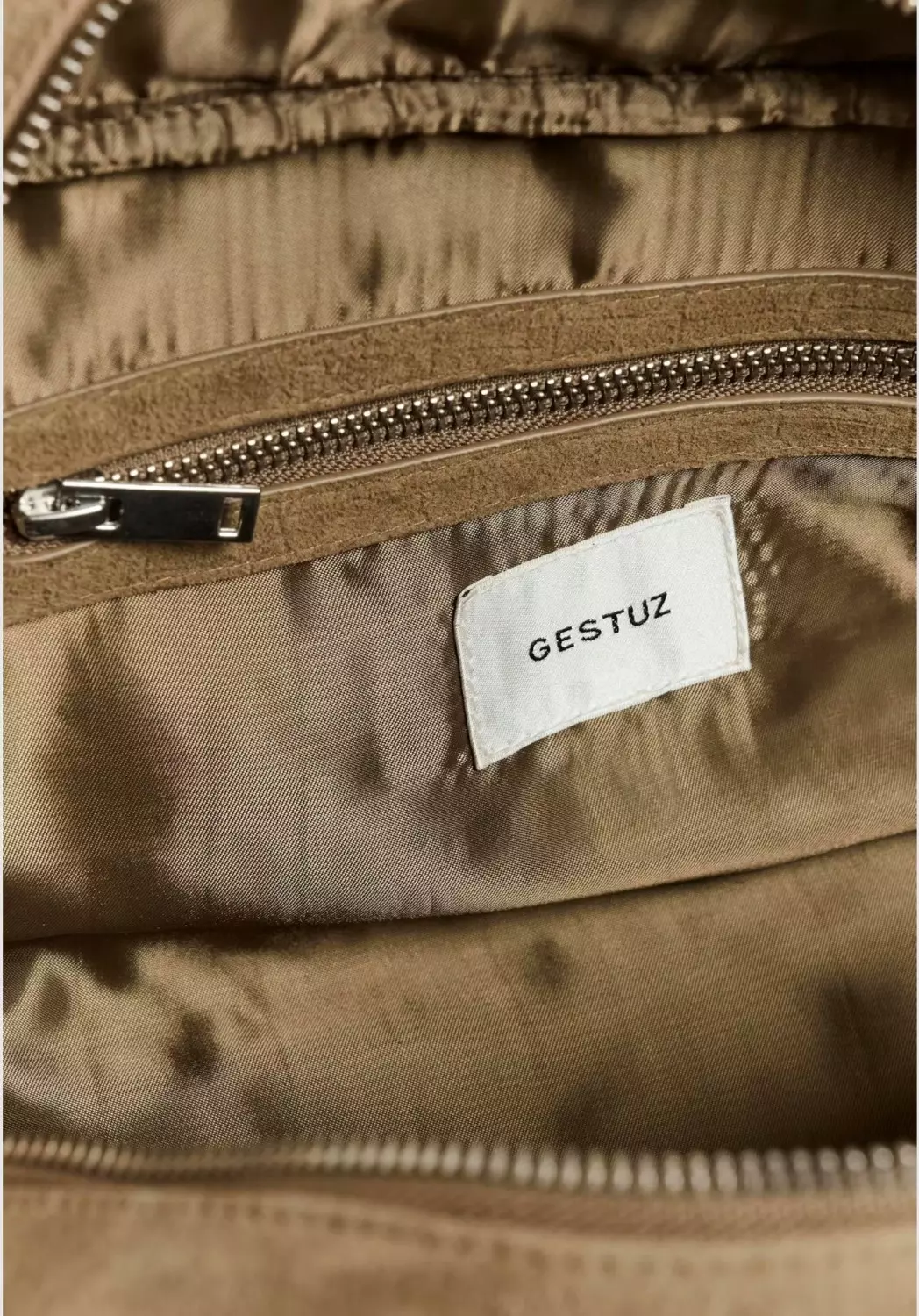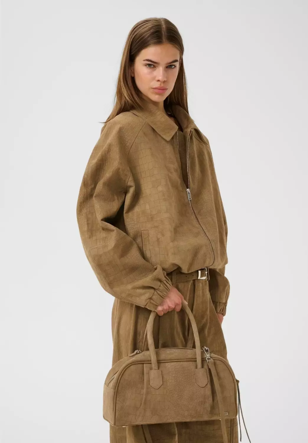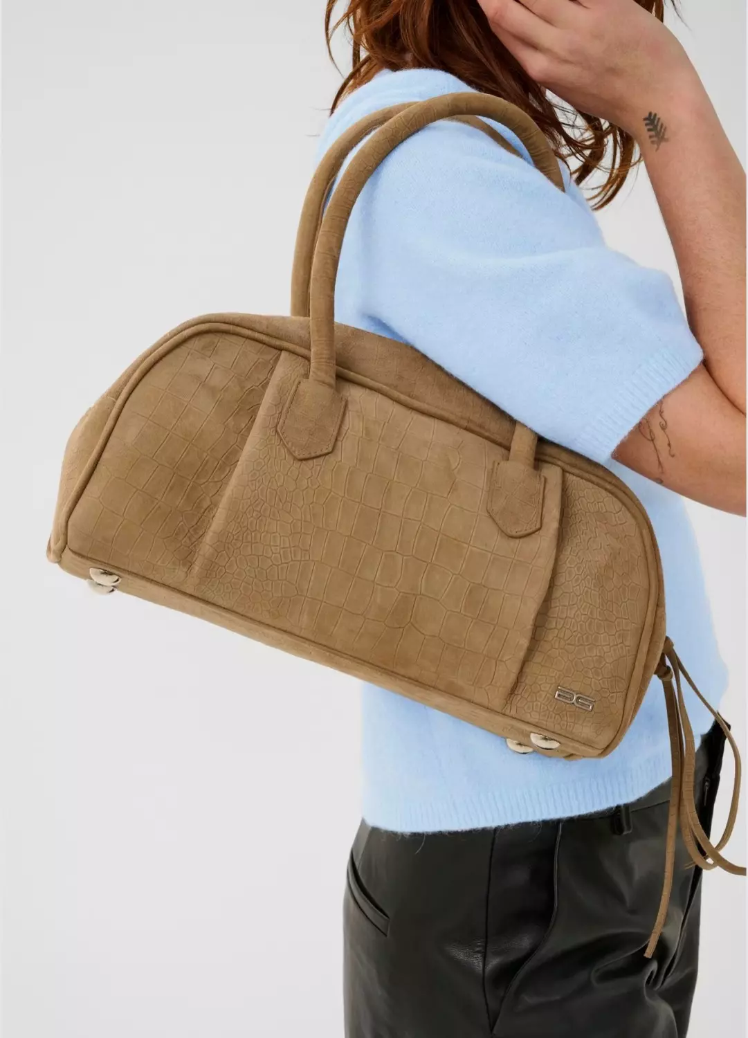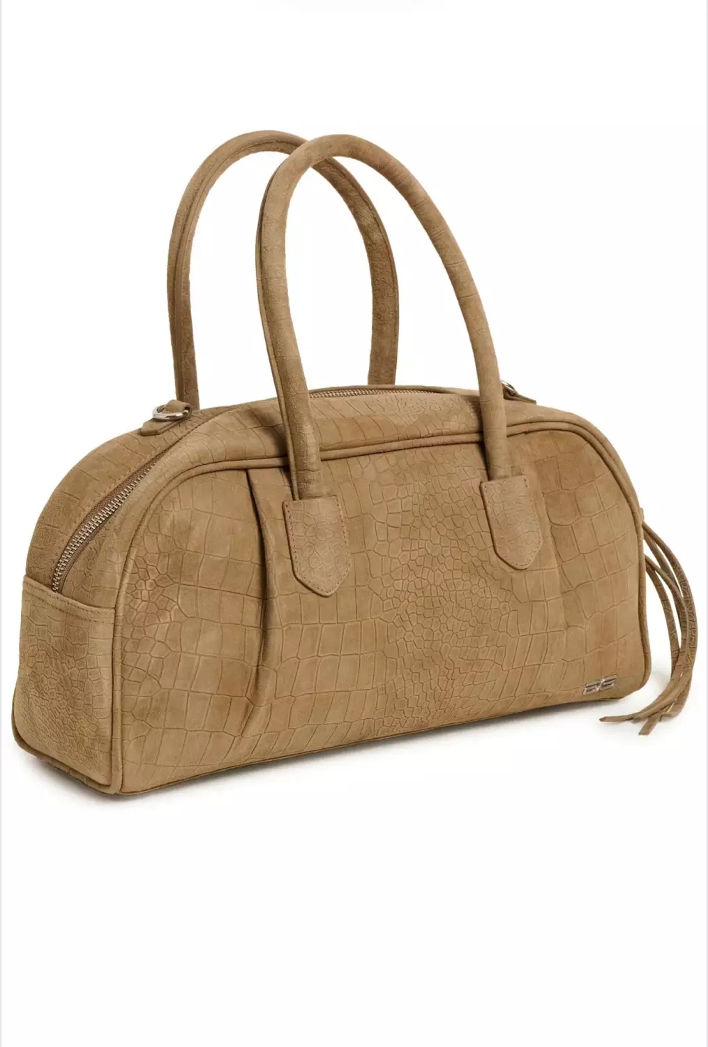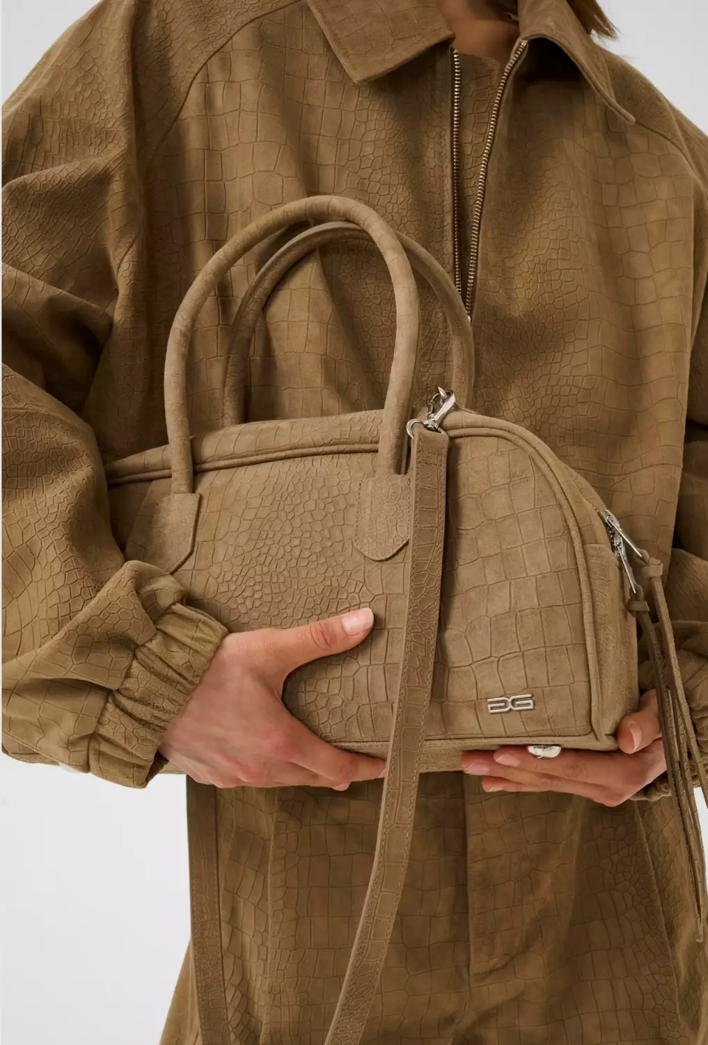 Elsk på denne vesken fra Gestuz i beige croco skinn! to håndtak, ett stort rom med glidenlås og en liten glidelås lomme inni. Den har skulderreim for de som ønsker det som er avdagbar. Liten gestuz logo nederst på den ene siden i front.