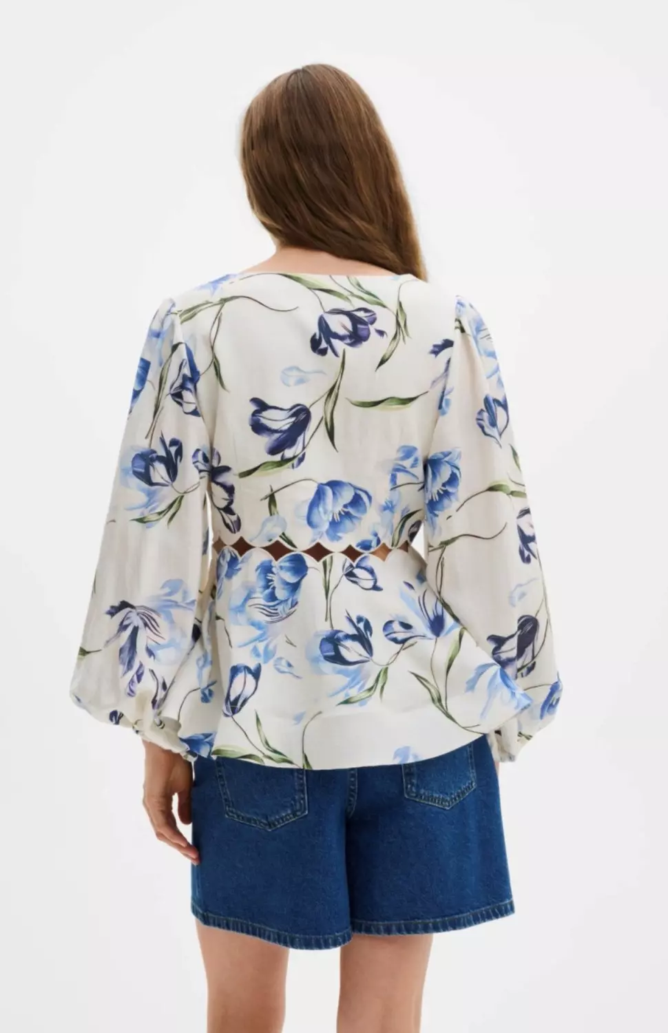 Malina Maya scalloped ballon sleeve blouse blomstrete